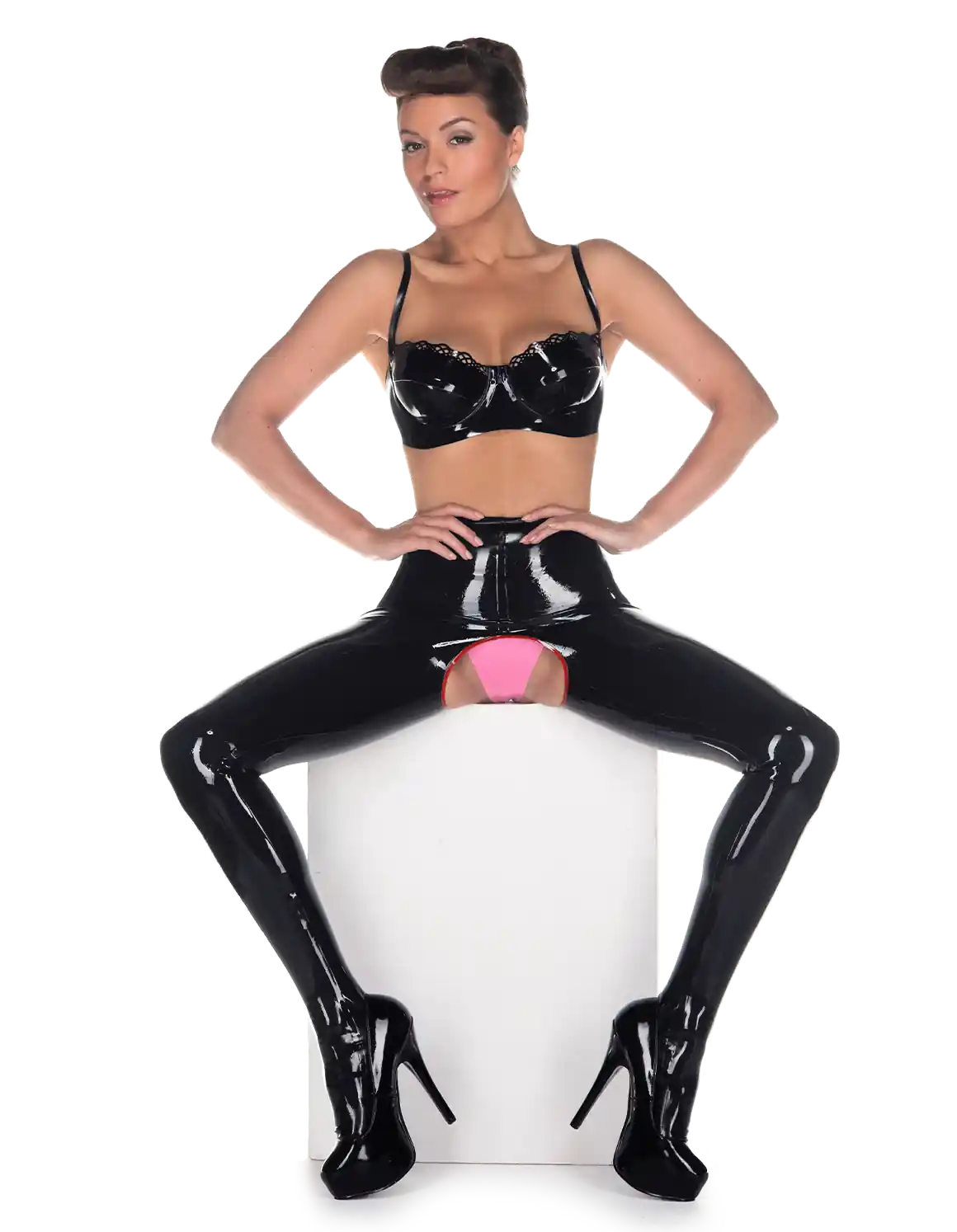 - A simple pair of leggings, but with a bit of a surprise! feature an open crotch faced with trim in a contrasting colour to lend a