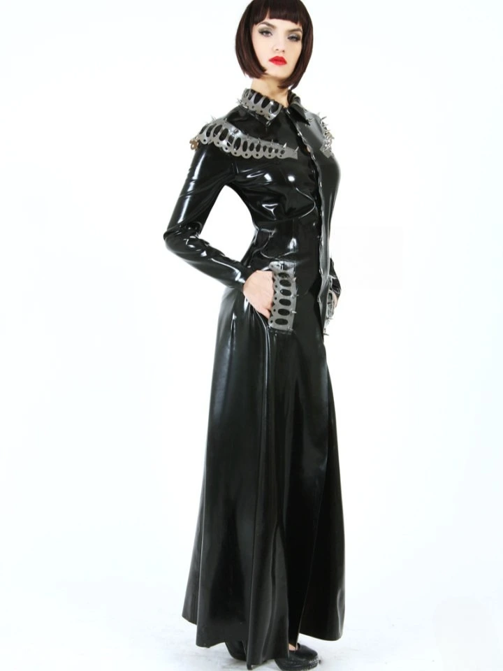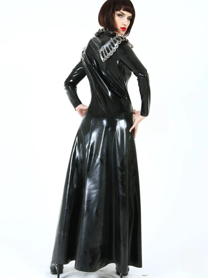 Full-length latex trench coat as shown;