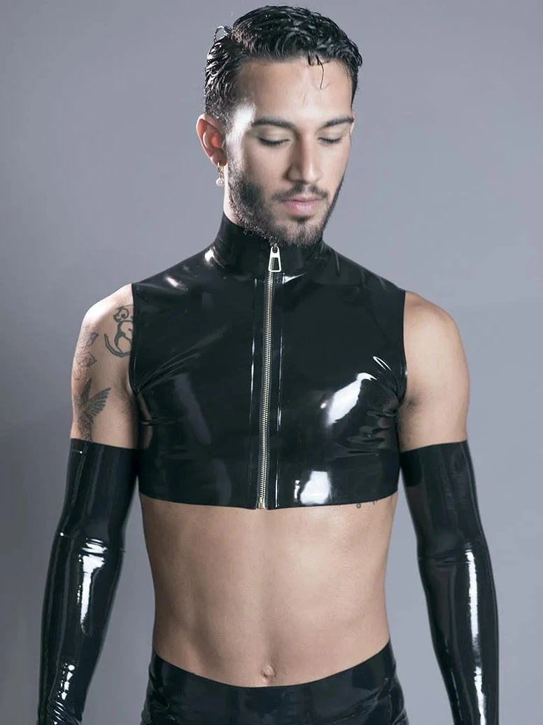 Turtleneck crop top with metal zip sof touch