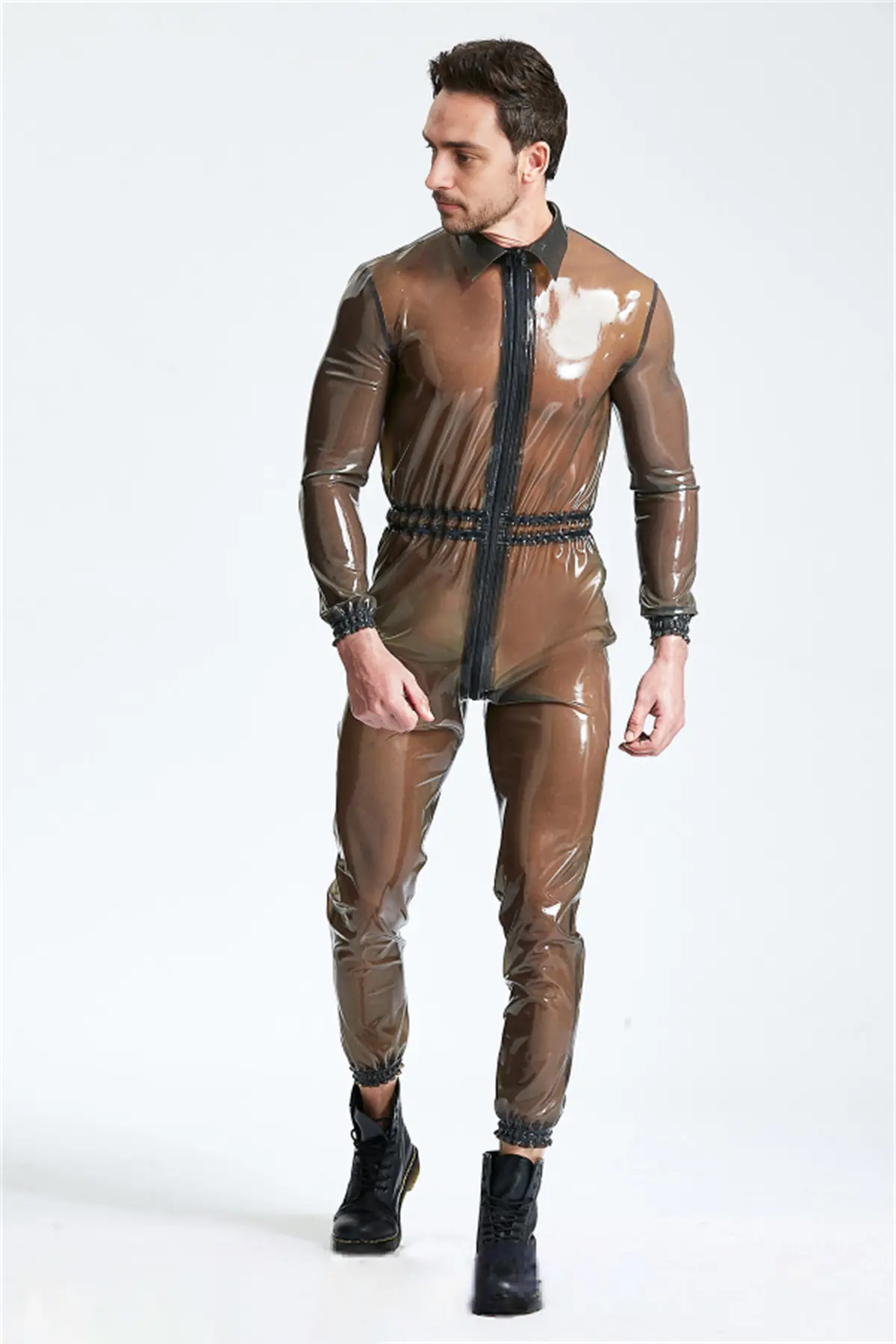 Male Translucent Front Zip ‘Romper’ Suit
