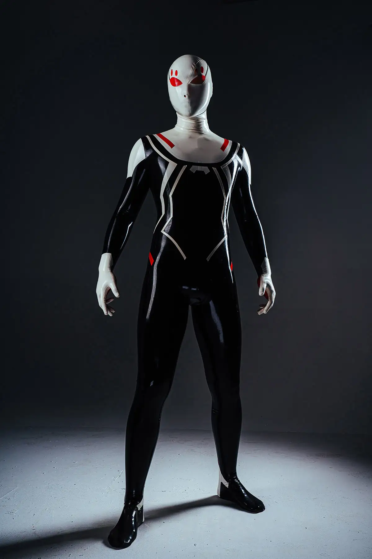 Male White-Headed ‘Spidey’ Latex Costume Catsuit